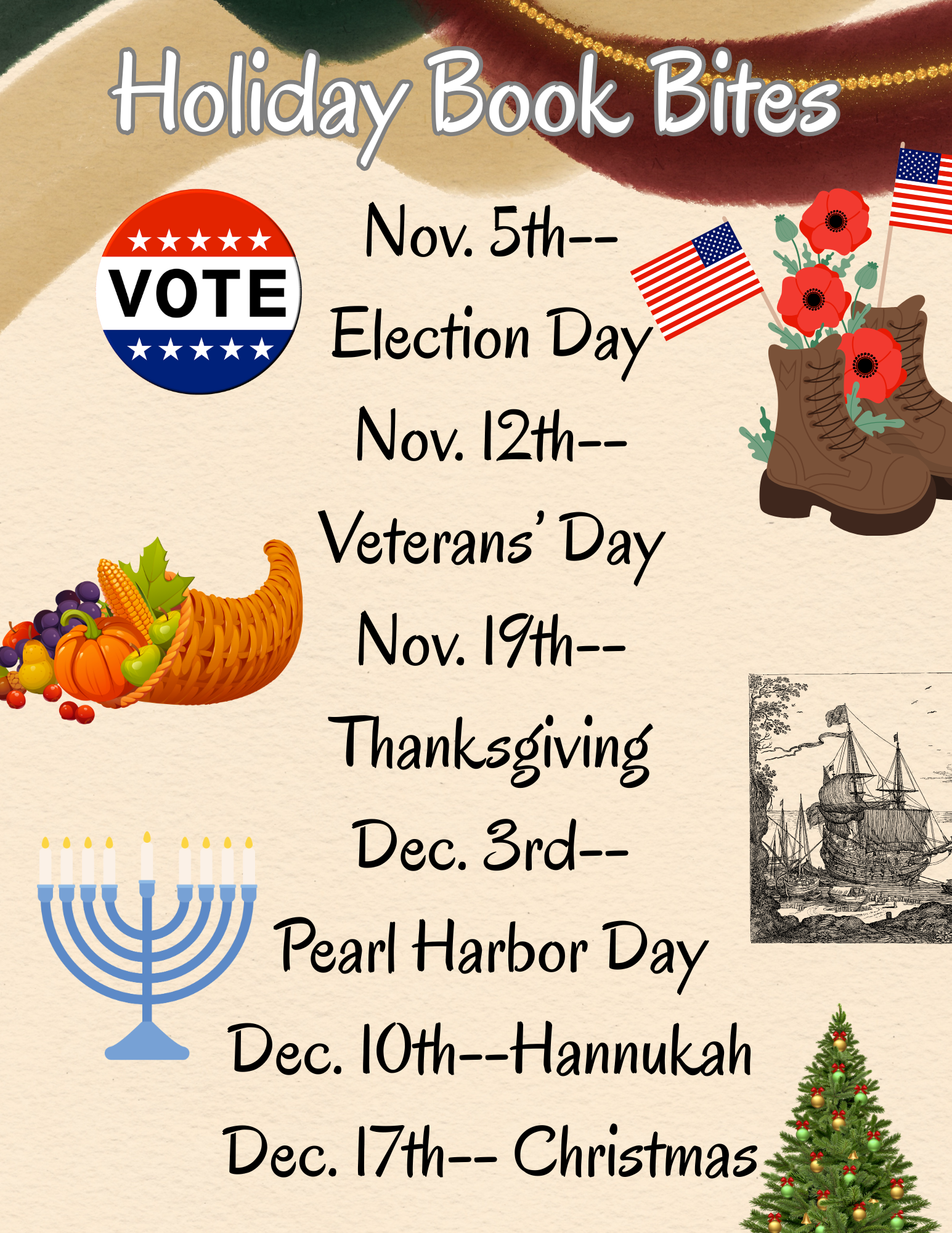 Learn about a different holiday each week through a wonderful book and craft project. We will read a picture book, learn more details about the history and celebration of the holiday, and then do a craft.