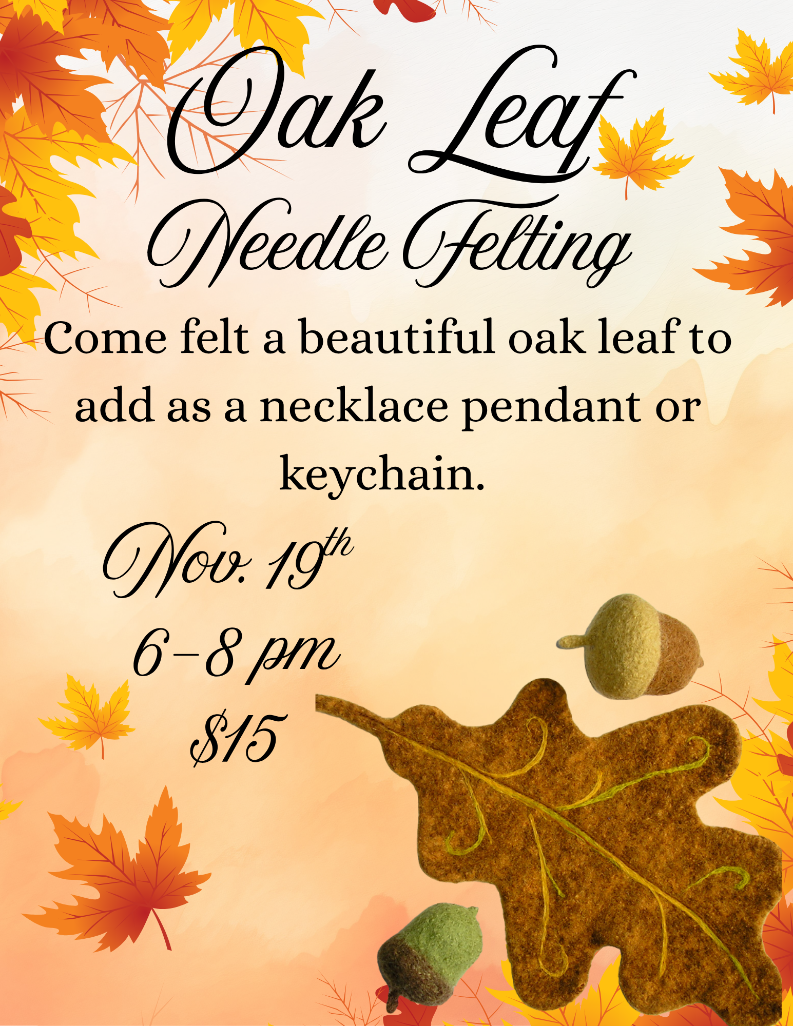 Come felt a beautiful oak leaf to add as a necklace pendant or keychain.